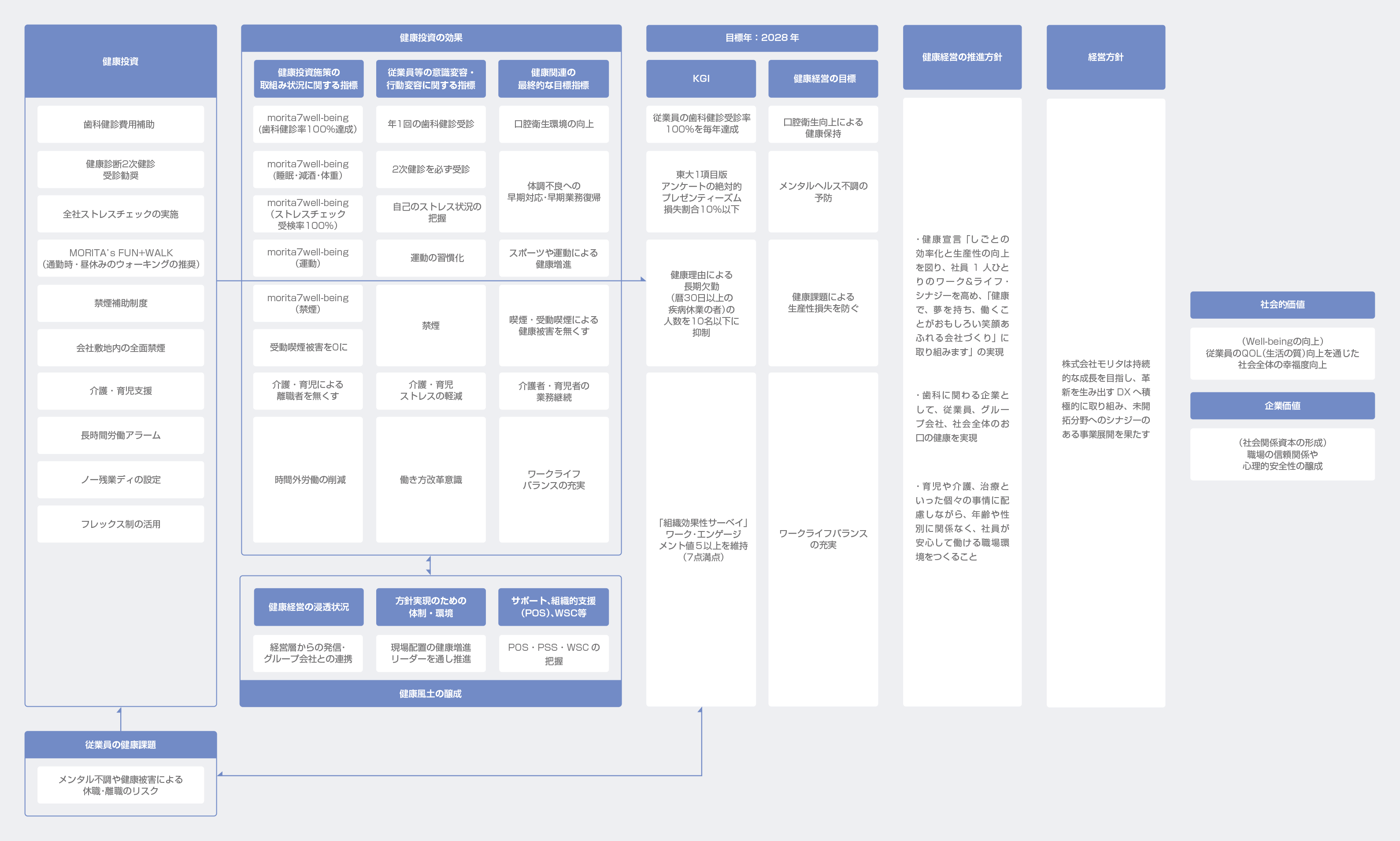 心身の健康、働きがい、職場環境、社会的価値の創出までを一体的に捉え、次のステップへとつなげる構成となっています。